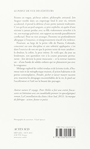 12 internautes sur 14 ont trouvé ce commentaire utile.DéceptionPar EminianPeter Heller collabore régulièrement à des magazines et est l’auteur de quatre livres de non-fiction sur la nature, l’environnement, le voyage, l’aventure. Il a été couronné par de nombreux prix. Bien qu’il soit new-yorkais, qu’il ait étudié dans le Vermont et le New Hampshire et qu’il vive aujourd’hui à Denver au Colorado, il a exercé de nombreux métiers tels que plongeur, maçon, bûcheron, pêcheur en mer, moniteur de kayak, guide de rivière et livreur de pizzas. Son second roman, Peindre pêcher & laisser mourir, vient de paraître.Peintre en vogue, pêcheur ardent, Jim Stegner tombe dans un engrenage fatal le jour où, témoin accidentel, il prend la défense d’une petite jument maltraitée. C’est qu’il a le sang chaud, ce père en quête d’une sérénité à jamais perdue depuis que sa fille adolescente a été assassinée il y a trois ans. Du jour au lendemain, son quotidien vire à la course poursuite avec d’un côté, ceux qui en veulent à sa peau pour venger la mort d’un des leurs et de l’autre, la police qui semble jouer au chat et à la souris avec lui.J’attendais beaucoup de Peter Heller tant son premier roman paru en 2013, La Constellation du chien, m’avait ébloui. Certainement trop car ce second roman m’a déçu. Ce n’est pas un mauvais bouquin, il s’inscrit même dans un genre qui m’est souvent cher, le roman américain type : pêche et nature sauvage, cadavres et police, héros jamais totalement innocent, fatum qui s’acharne malgré une quête de rédemption etc.Dès les premières pages j’ai compris que ce livre ne serait pas au niveau du premier, mais enfin, ça débutait bien. Car il y a de bonnes choses, cette idée de narration sur trois niveaux si on peut dire, l’histoire brute, sa narration par Jim et son écho par le biais des tableaux qu’il peint, reflets de son subconscient. Il y a aussi de belles pages quand l’écriture transpire toute la tendresse d’un père pour sa fille morte, une présence toujours présente et qu’il imagine entendre lui parler. Le texte ne dit pas les choses tout de suite, elles se découvrent au fur et à mesure, plus on entre dans le roman plus la personnalité – loin d’être exemplaire – de Jim se révèle, son passé d’alcoolique, de violence déjà, contraste entre ses aspirations et ses actes.Mais tout cela ne tient pas bien la route jusqu’au bout. Le « truc » des tableaux devient lourdingue et lasse, sans compter la présentation ambigüe des faits : on ne sait que peu de choses des « méchants » tandis que le narrateur (bien que criminel) est dépeint avec empathie, ce qui crée un malaise déplaisant pour le lecteur. La dernière partie du roman est aussi bien lourdingue et bavarde.Je reconnais être dur avec ce livre qui ne le mérite peut-être pas réellement, mais je suis tellement déçu…PS : Si quelqu’un peut m’expliquer pourquoi l’écrivain utilise à tort et à travers, la pratique du saut de ligne, double intervalle ? Surtout dans les dialogues ? Ca ne gêne pas la lecture, certes, mais c’est pour comprendre le but : faire un genre ? Intriguer ceux qui feuillettent les livres chez leur libraire ? Rendre le bouquin plus gros qu’il n’est ? Ce serait sympa d’éclairer ma lanterne, car j’aime bien comprendre les techniques d’écriture.« Je suis resté allongé sur la couverture, nu, et j’ai pleuré. Pour le cheval. Qu’on déplaçait vers un autre lieu inconnu, où elle serait plus ou moins bien prise en charge par d’autres inconnus. J’ai pleuré pour moi, aussi, car j’avais l’impression de semer le trouble partout où j’allais. La violence qui semblait me suivre à la trace frappait sans aucun discernement et s’attaquait à tout ce qui m’entourait : chevaux, amis, voisins. J’ai pleuré. Bon sang, Jim, Irmina avait raison, il faut que tu te calmes, que tu répandes la paix autour de toi, pas le chaos. Pour la sécurité des uns et des autres. Comment a-ton pu en arriver là ? »